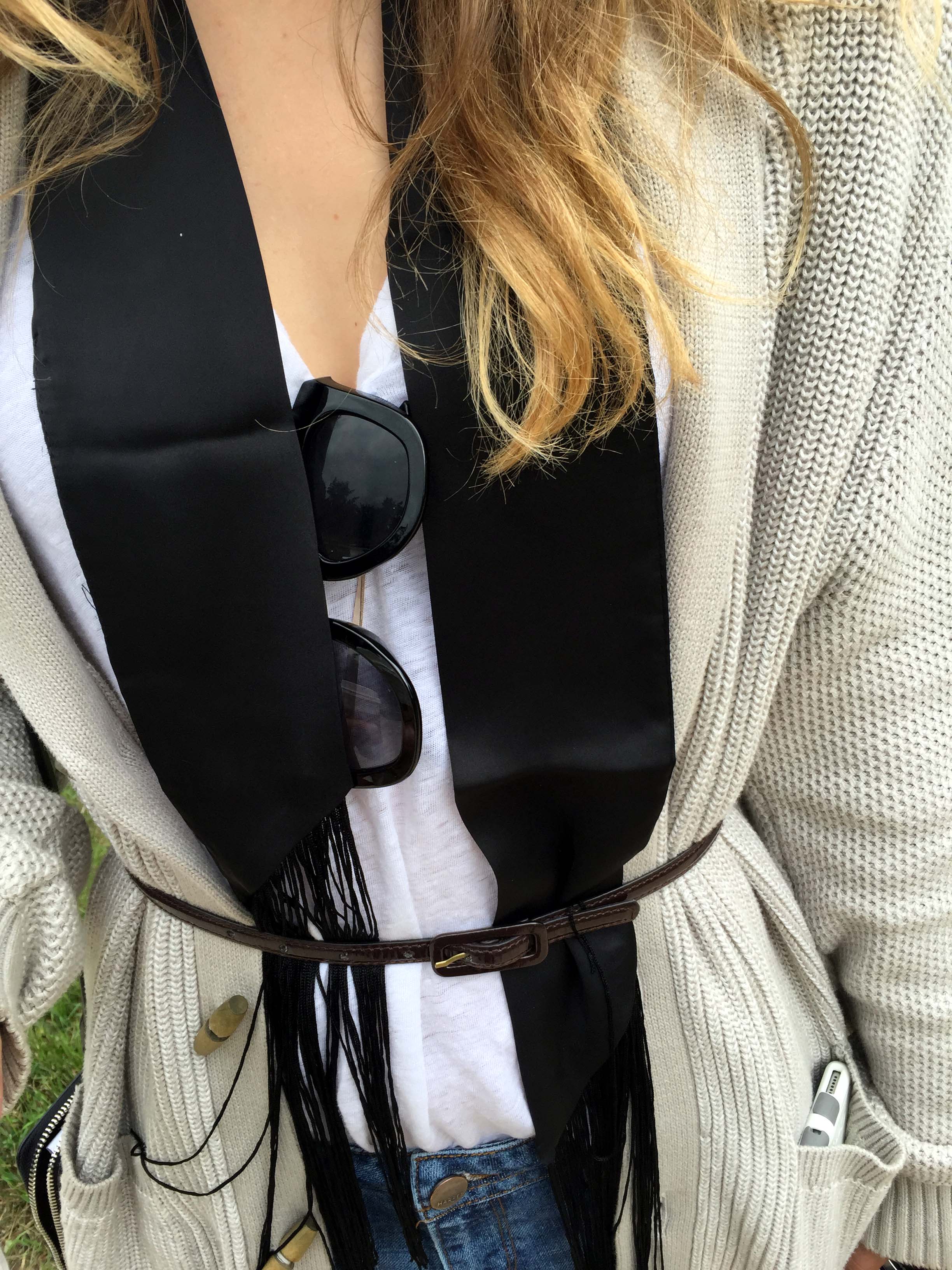 The Fall seems as though it has come early this year, which I am not mad about. Fall is my favorite season. So on this relatively cold summer day, my boyfriend and I had plans to go get coffee when we realized it was only 60 degrees out. The unexpected weather shift had me rummaging through his closet to find something warm. I slipped on this literal “boyfriend cardigan” and added a belt to accentuate my waist. I then put on my new favorite skinny scarf. I wrapped it around my neck tightly once and then tucked it underneath my belt. This chic layering trick is perfect for the fall and looks awesome with a pair of booties and a pair of boyfriend jeans.