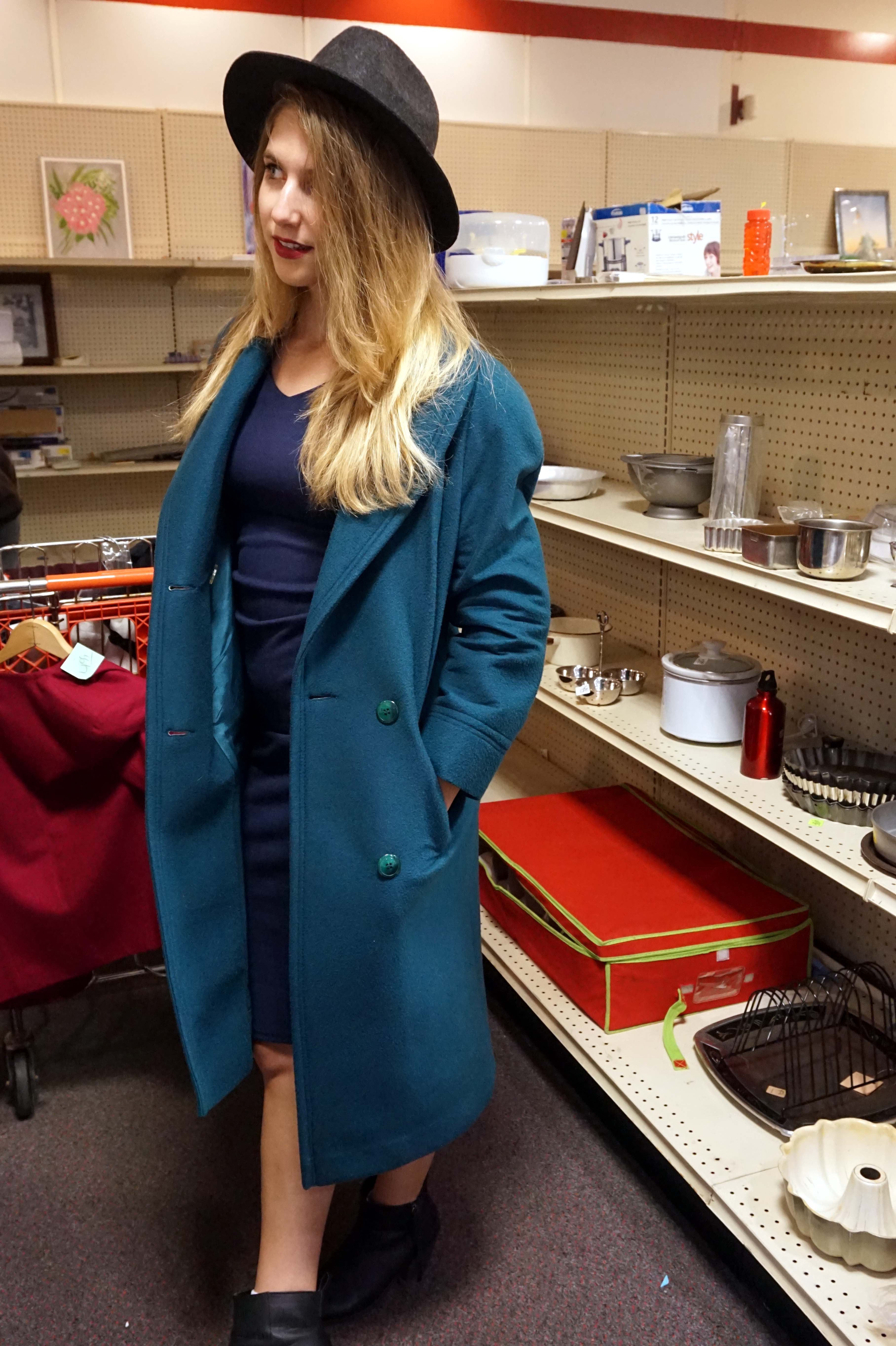 I eventually found this beautiful blue- green jacket (pictured below) that I was obsessed with. This was partially because blue-green is my favorite color scheme. The structure and fit were amazing, but with one fatal flaw. The sleeves were too short. I live in Michigan. My whole arm better be covered and then some.