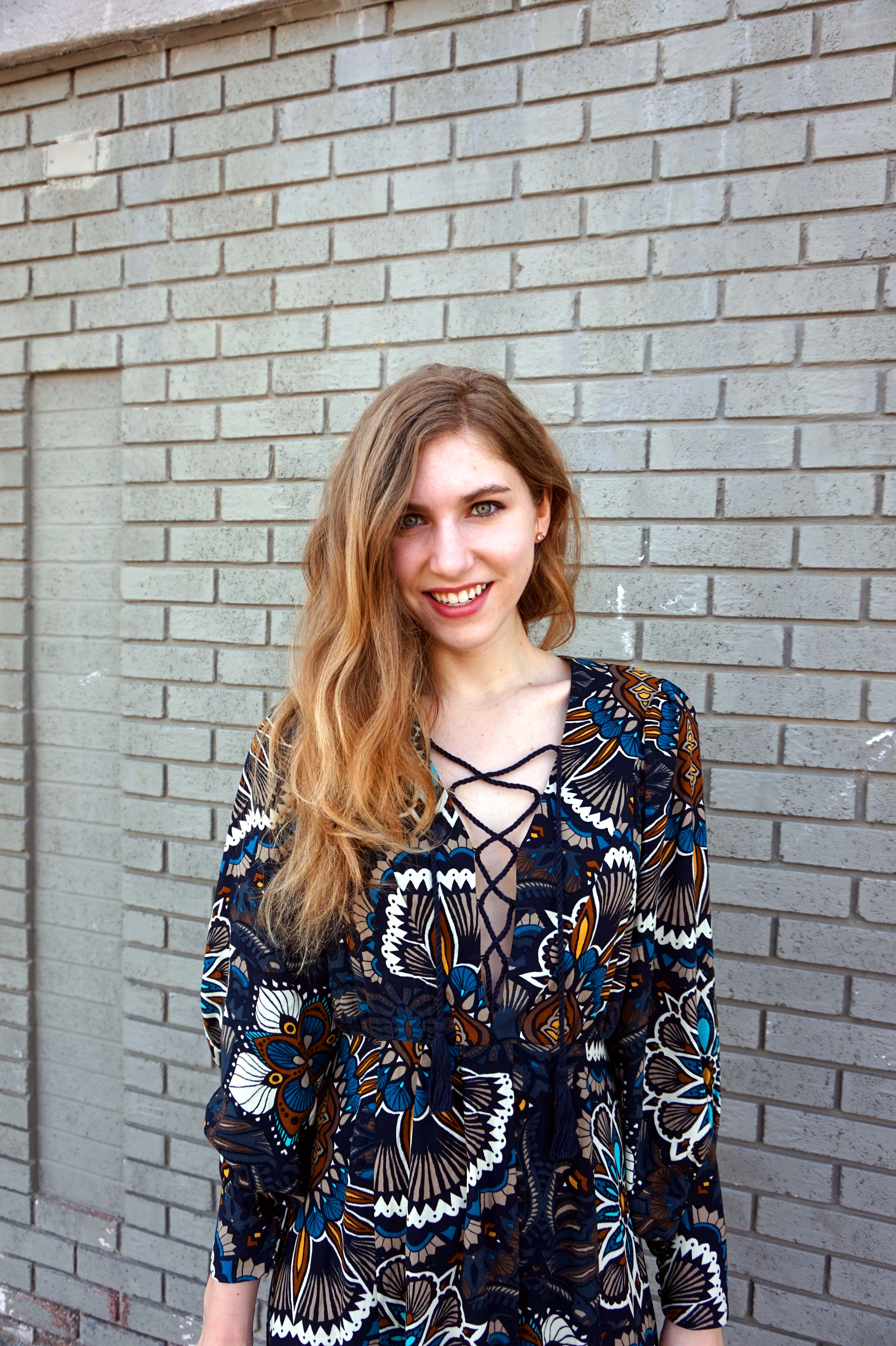 I styled my dress quite simply because the pattern is extremely loud. The draw string neck line also adds even more detail, which would make any jewelry quite cluttering. Now when it comes to color be careful. I am very pale after this long winter and I have  a cool skin tone, so I stick with dark blues or dark reds. Another way to tell if you have a cool skin tone is if the veins in your wrist are blue or green. Blue veins mean cool and green veins mean warm. For warm skin tones bright colors look best to really compliment your color like a hot red or a jewel-tone purple.