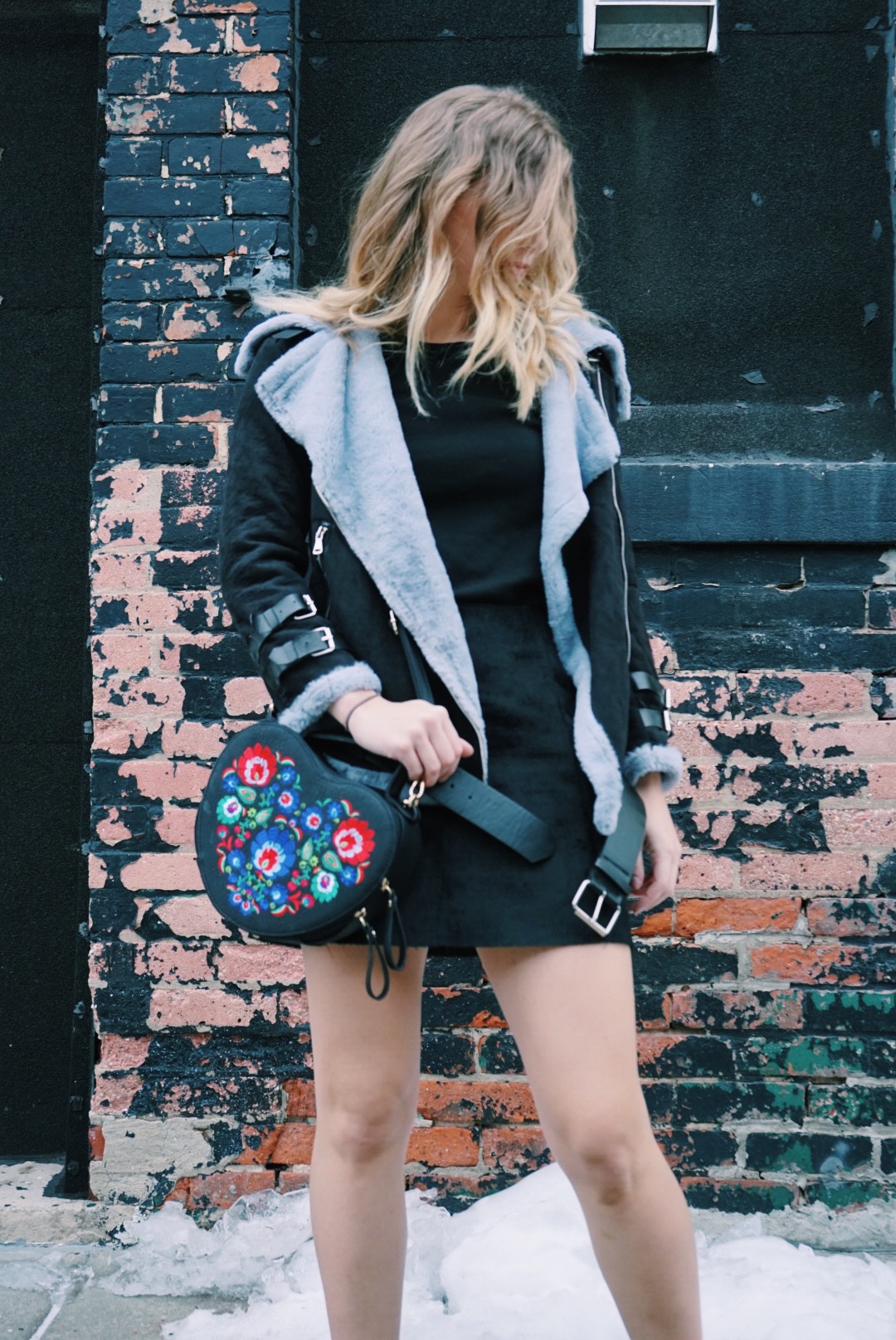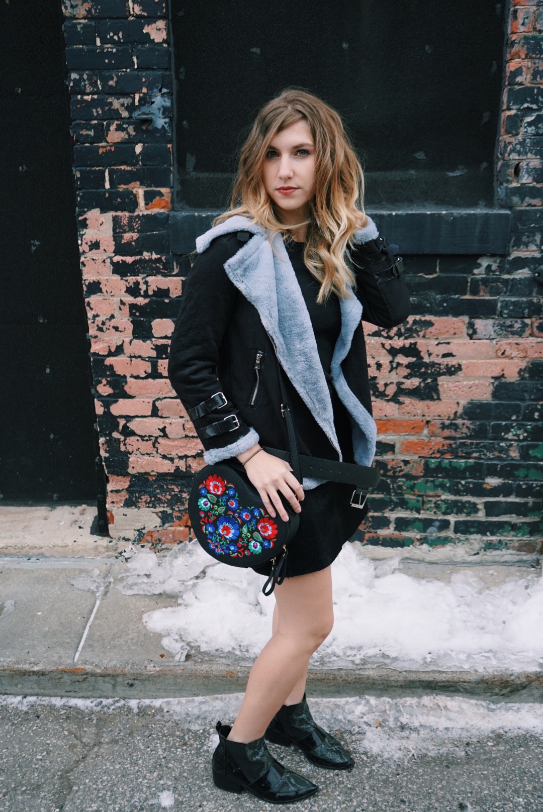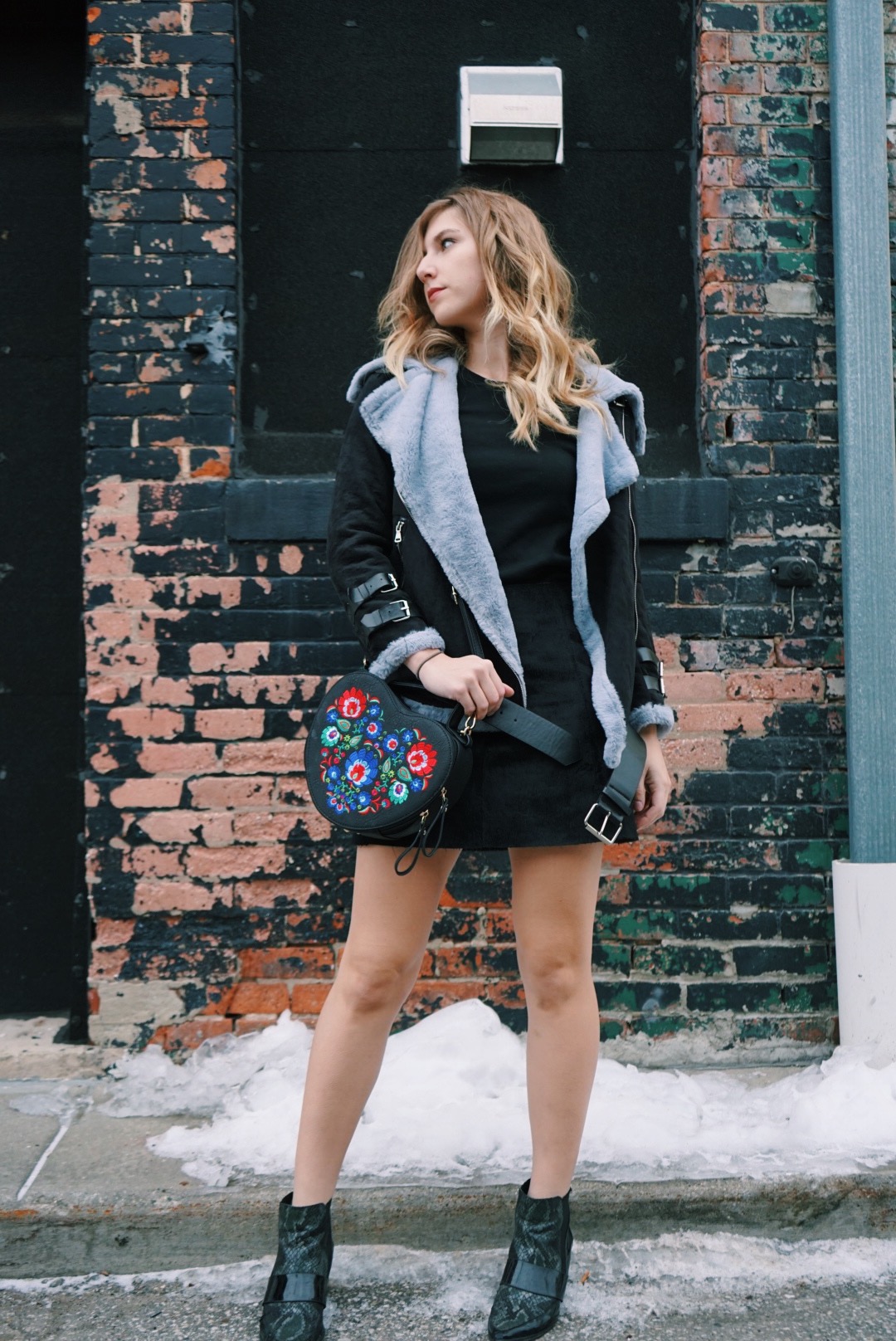 In love with that outfit from head to toe! Is that a suede material dress??!!? I’m obsessed and need it in my closet! The buckles on the jacket give it that extra sassy flair that I love! Great combination per usual!!