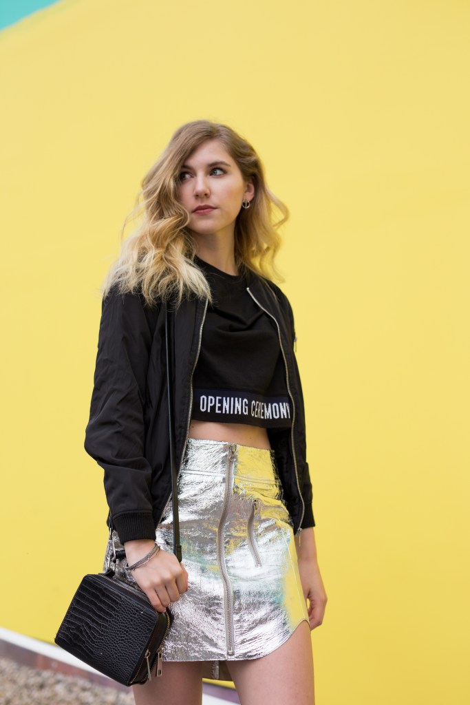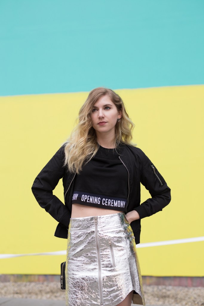 I’ve always loved a good metallic piece to spice up an outfit. When I saw this skirt I died a little bit inside. It is absolutely gorgeous and although I did get a few hilarious replies to my Instagram stories, I must assure you it is not tin foil nor insulation. The skirt is so unique with it’s shape. A pear-shape girl like me was so excited for a longer back of the skirt than the front. I paired this with an Opening Ceremony crop top to reach the ultimate city look. I rounded my outfit off with my staple bomber and jean jacket. It may have just been Memorial Day Weekend, but it is not summer yet NYC. (Maybe the skirt was for insulation lol)