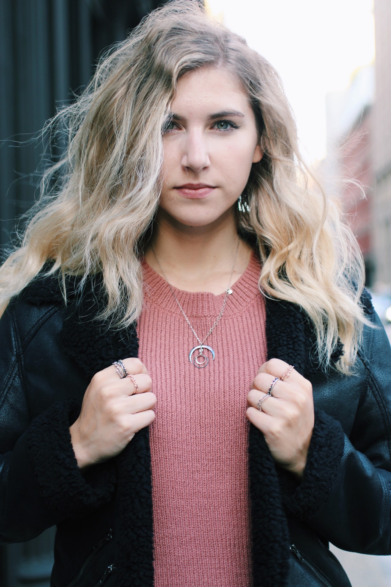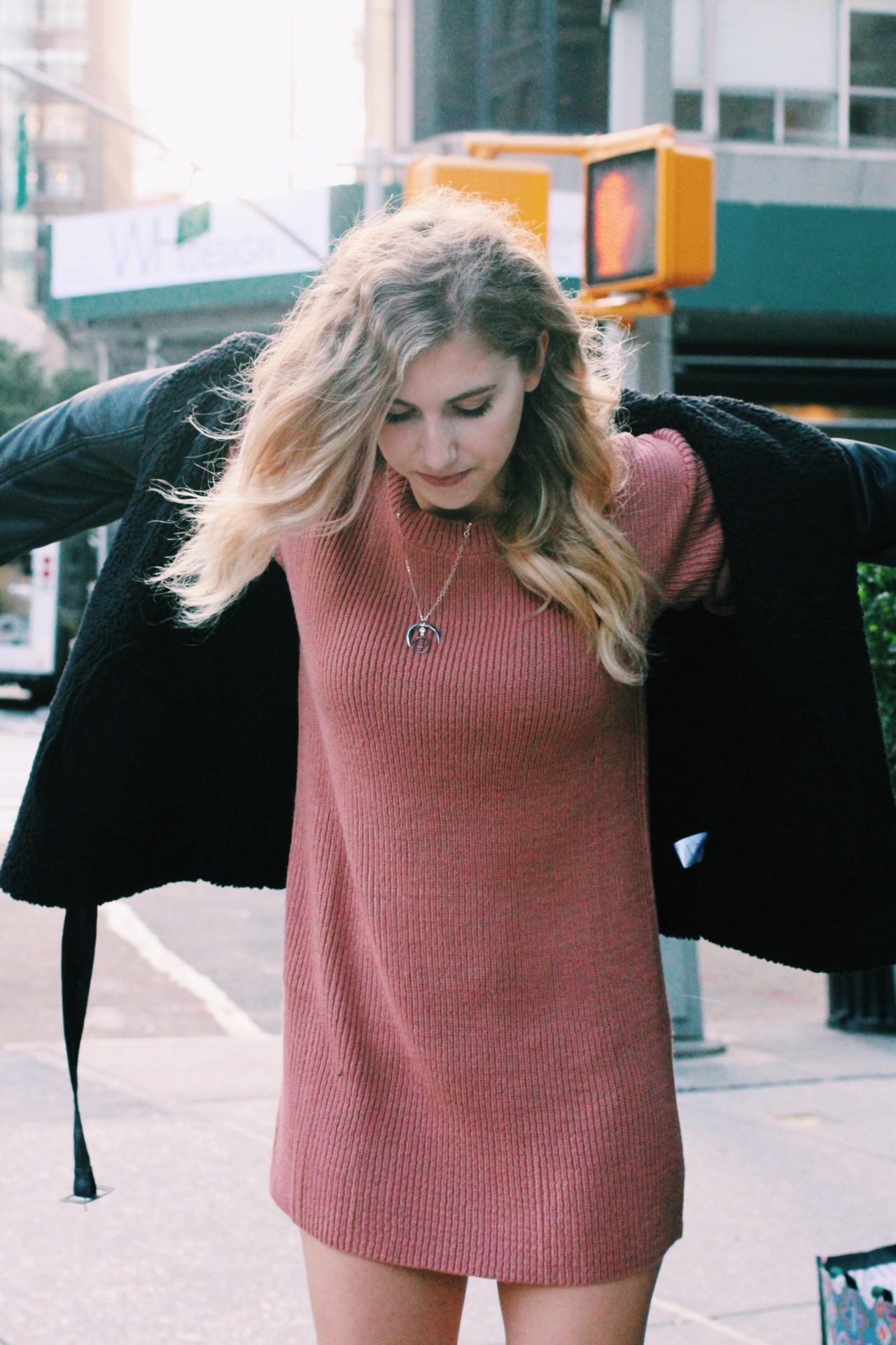 Shop Tobi Jacket / Shop Tobi Sweater Dress / Kendall + Kylie Boots / Eva Knox Necklace