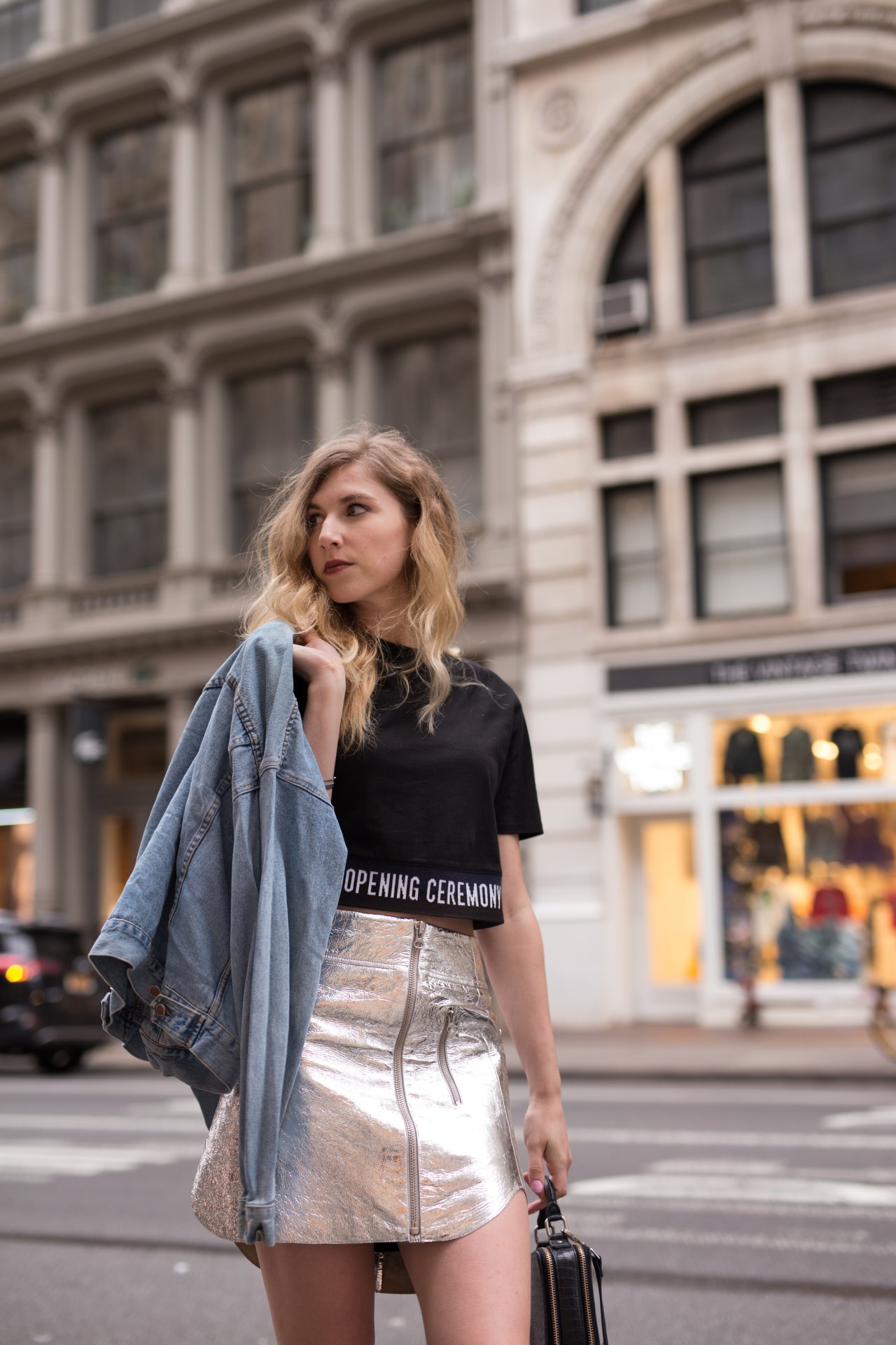 I am obsessed with this dress. Yes, I said dress. This sweater and metallic pleated skirt combo comes in one piece! This gorgeous dress is only $39 and I’m in love. I styled it with a metallic slender waist belt and my favorite pair of edgy boots. I then added my new earth-toned Fossil bag …